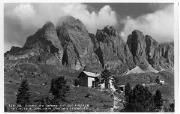 725-38. Dolomiti, Val Gardena. Rifugio Firenze in Cisles m. 2040 con le Cime delle Fermedes