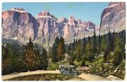 Posta automobile sulla strada delle dolomiti al passo di Pordoi (2250 m). Tirolo.
