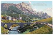 Cortina gegen Punta nera, Sorapis und Antelao mit Brücke d. neuen Dolomitenstrasse. Tirol.