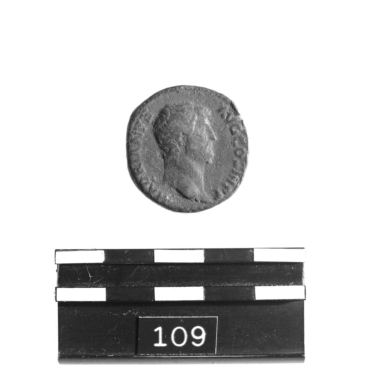 D/ HADRIANVS AVG COS III P P; busto di Adriano a d. con testa nuda;||c.p. R/ DACIA in esergo; Dacia seduta a s. su roccia,||con vessillo nella d. e spada curva nella s., piede d. su globo(?); ai||lati, S C; c.p