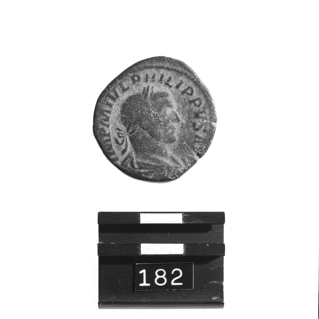 D/ IMP M IVL PHILIPPVS AVG; busto laureato, drappeggiato e corazzato di||Filippo I a d.; c.p. R/ SALVS A[VG ]; Salus stante a s., con||scettro nella s., nutre un serpente avvolto intorno ad un altare; ai||lati, S C; c.p