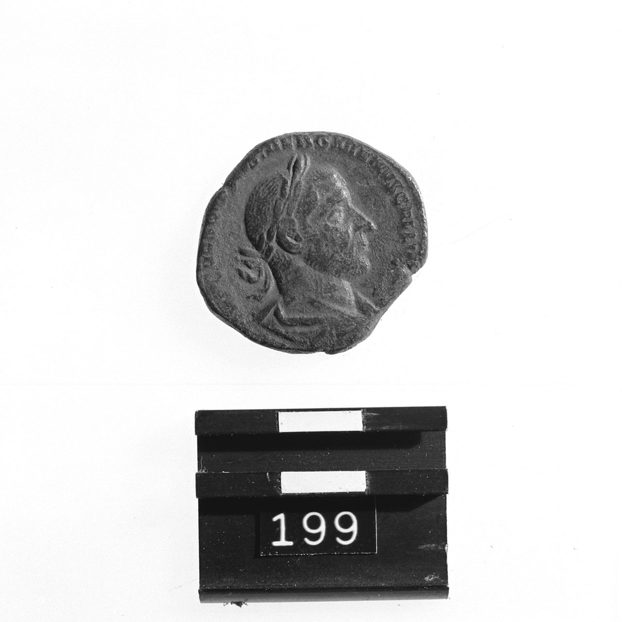 D/ IMP CAES C [VIBIVS] TREBONIANVS GALLV[S AVG]; busto laureato,||drappeggiato e corazzato di Treboniano Gallo a d.; c.p. R/||PIETAS AVGG; Pietas velata stante a s., con le braccia sollevate in||alto; a s., altare; ai lati, S C