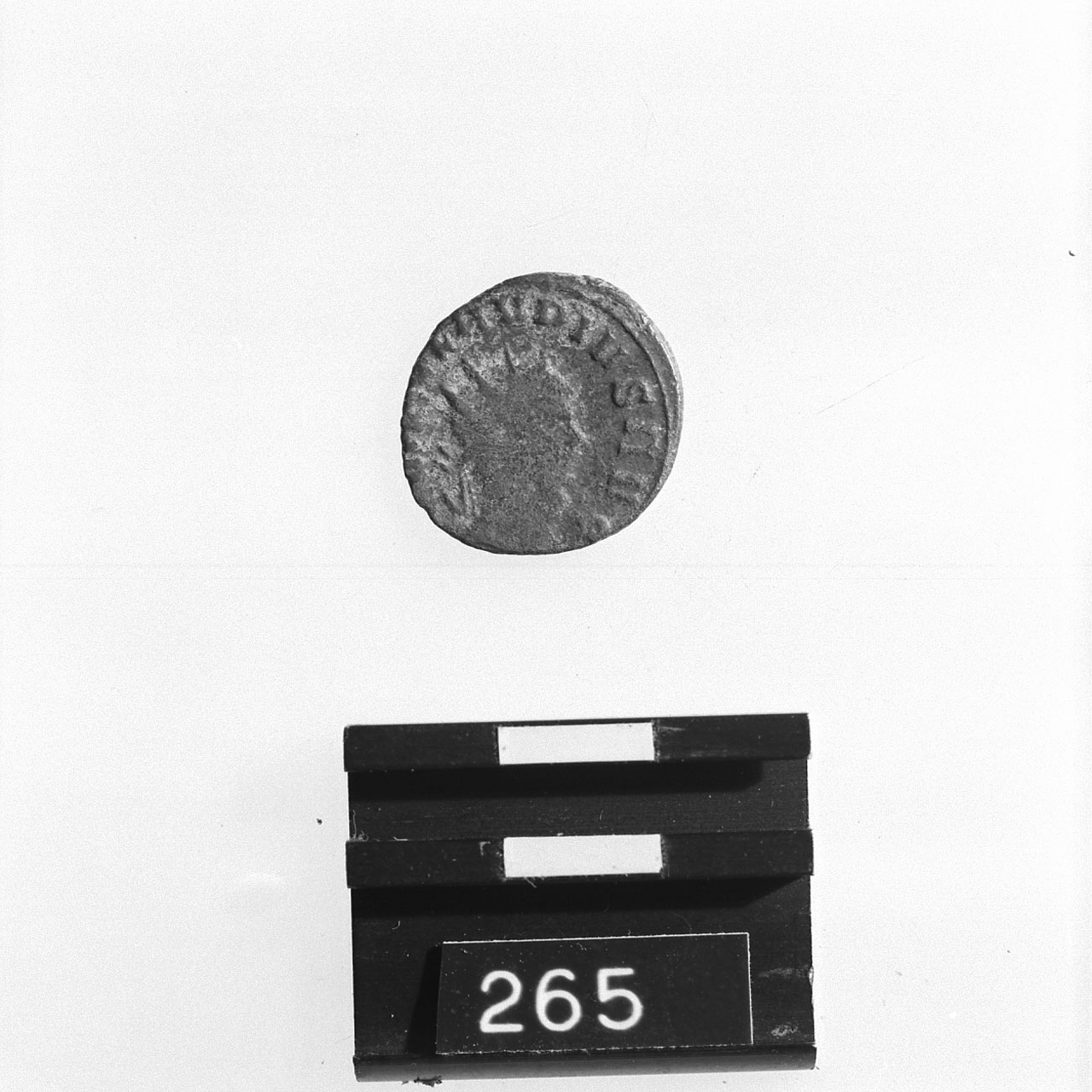 D/ [IMP C] CLAVDIVS AVG; testa radiata di Claudio II a d.; c.p.|| R/ GENI V[S AV]G; Genio stante a s., con patera nella||d. e cornucopia nella s.; davanti, altare; a d., gamma; c.p