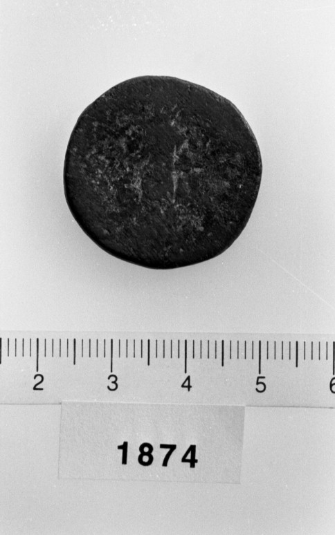D/ Testa laureata (?) di Domiziano, a d.||R/ Figura femminile stante a s