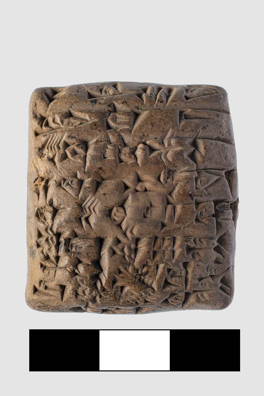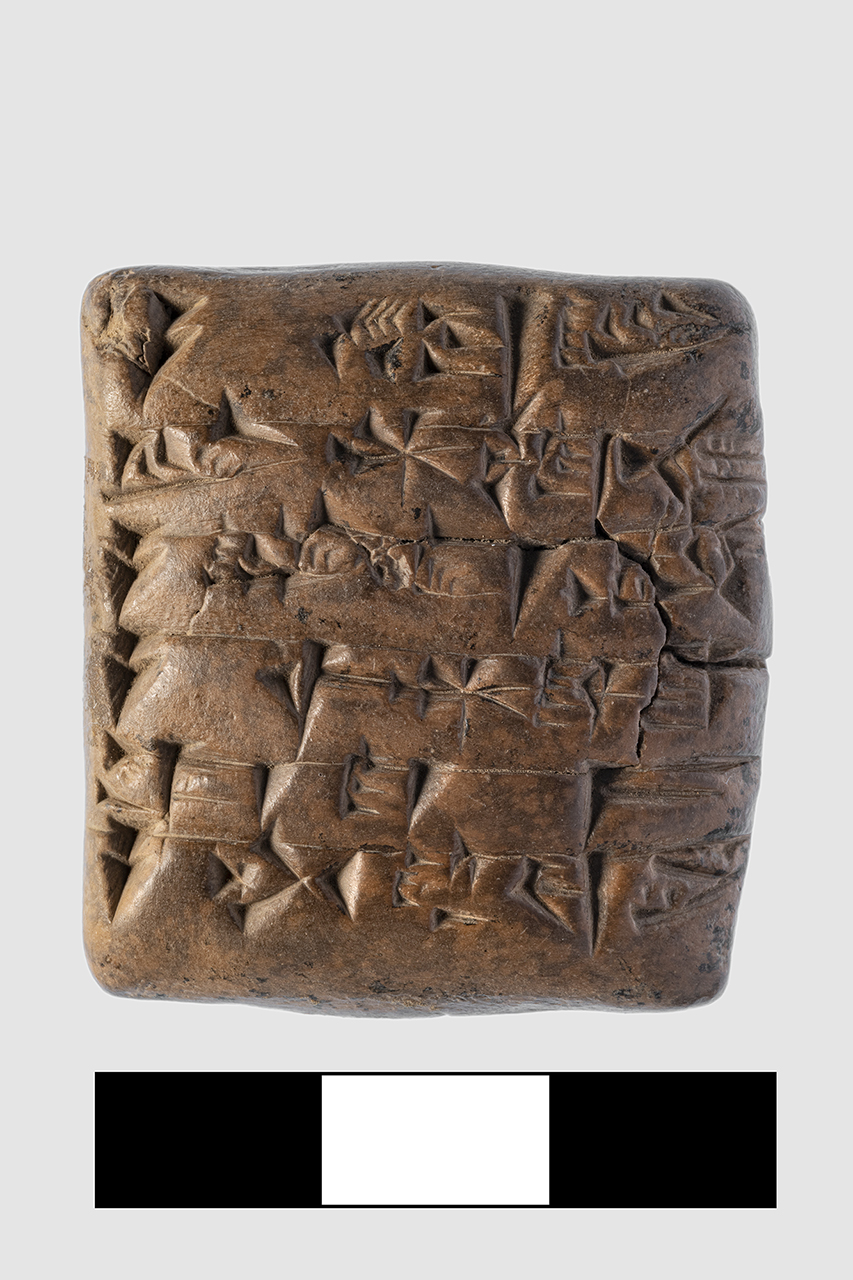 Tavoletta cuneiforme neosumerica in argilla di forma rettangolare, di contenuto amministrativo. Il colore è marrone scuro uniforme. La conservazione è buona e permette la lettura completa dei segni. L'iscrizione in lingua sumerica si sviluppa su sei righe nel recto e sette nel verso
