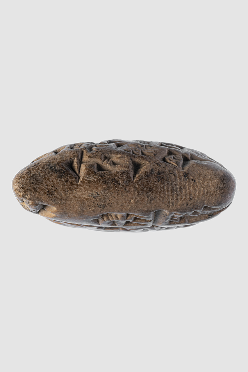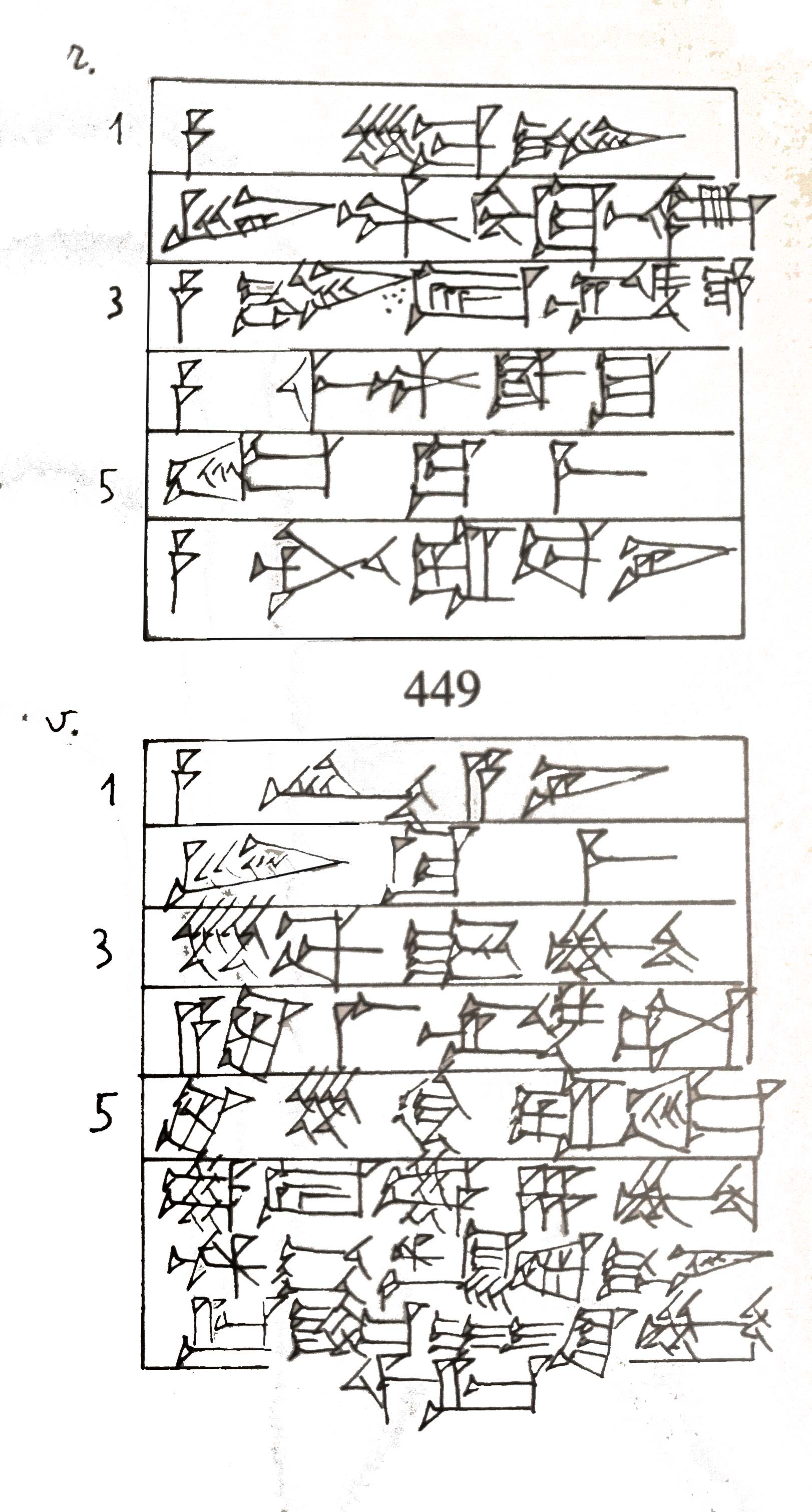 - ISCRIZIONI recto - 1. 2(barig) še-ba lugal 2. lu2-dnin-šubur 3. 2(barig) lugal-e2-mah-e 4. 2(barig) igi-dšara2-še3 5. giri17-dab5-me 6. 2(barig) er3-ra-ba-ni Traduzione: 120 sila di razioni di orzo secondo il gur reale Per Lu-Ninšubur, 120 sila per Lugal-emahe, 120 sila per Igi-Šaraše, reggitori di briglie; 120 sila per Erra-Bani - cuneiforme - sumerico