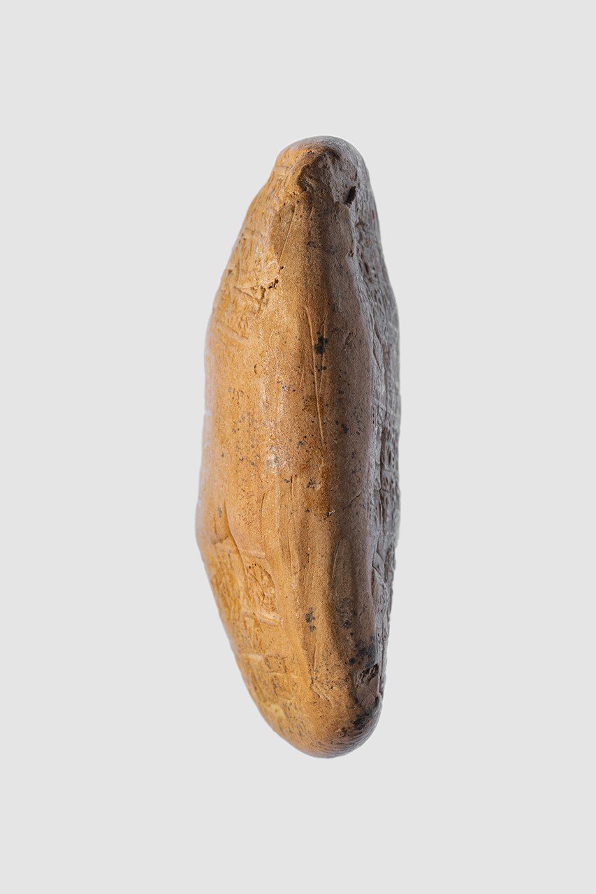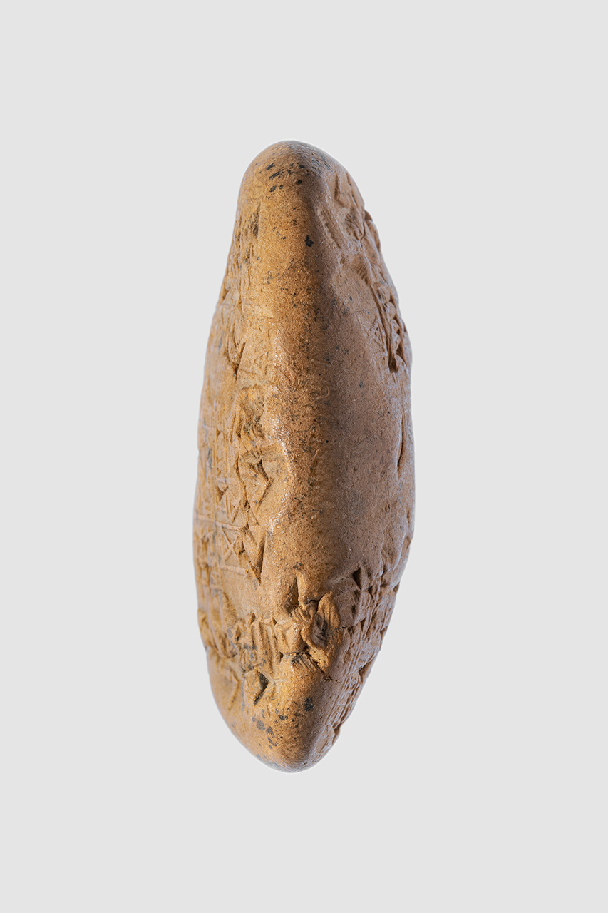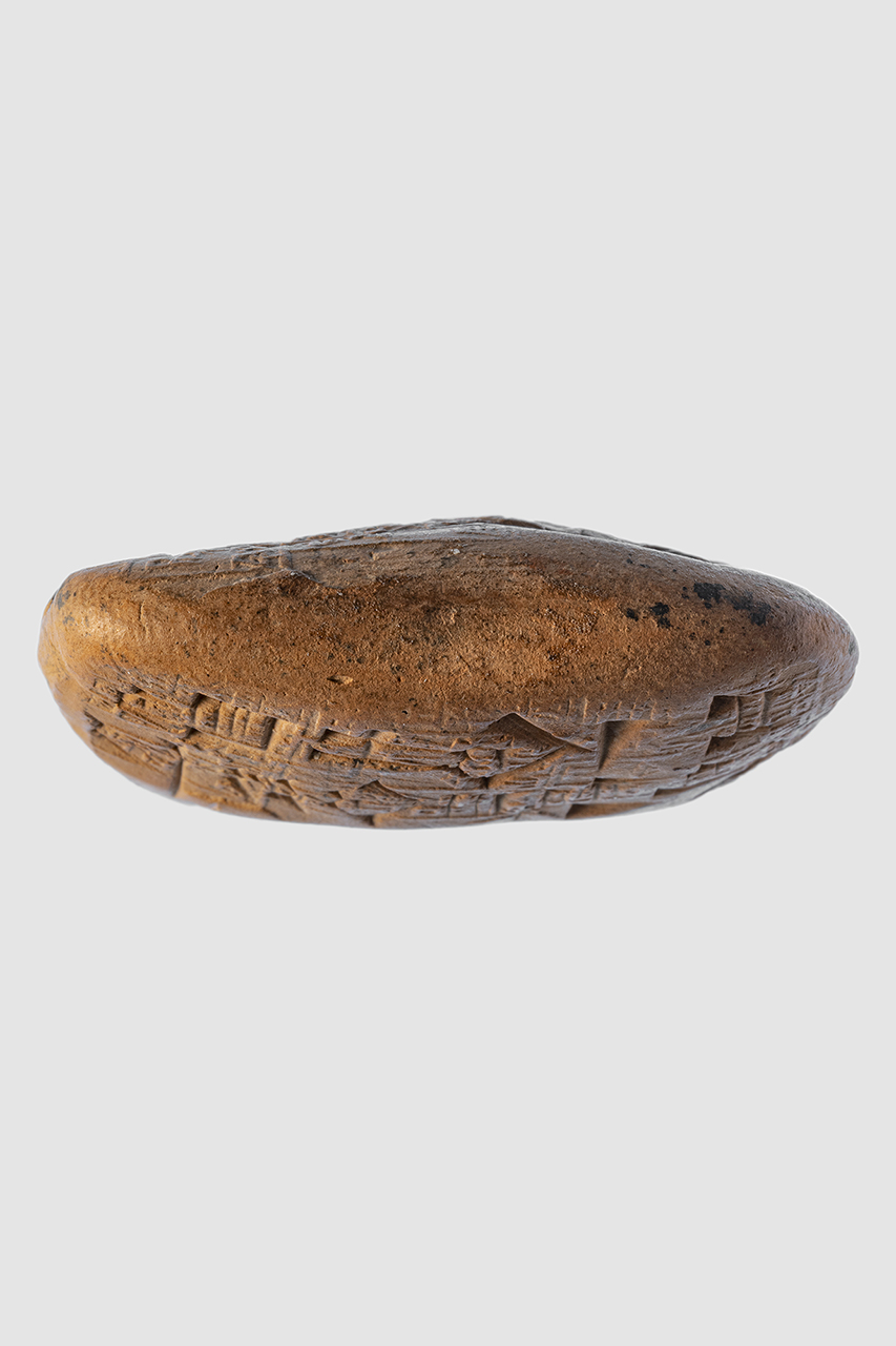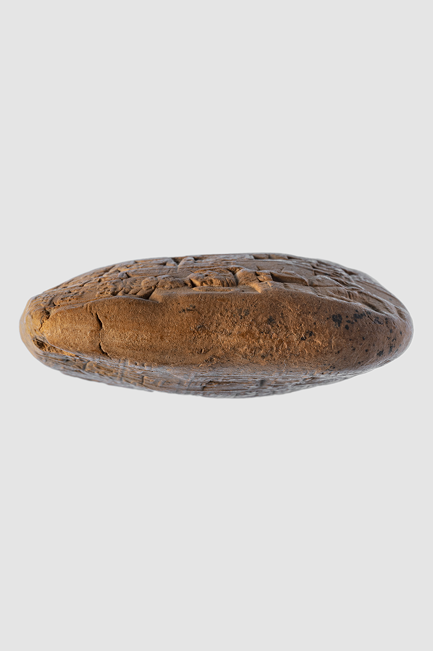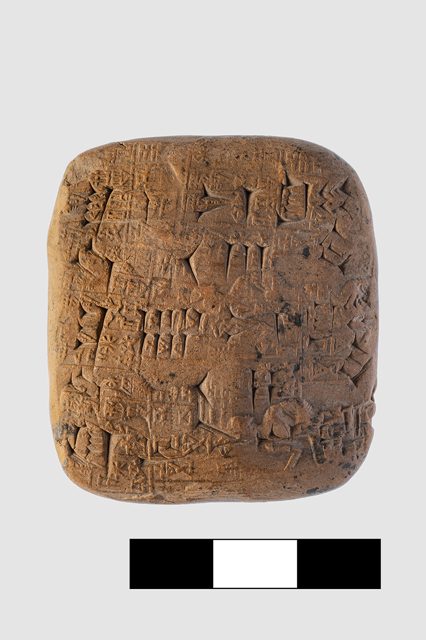 - NOTIZIE STORICO CRITICHE Il testo della tavoletta recita: “40 sila di farina di orzo: 13° giorno; 39 sila di farina d’orzo: 14° giorno. Da parte di Lu-dingira. Sigillato dal governatore. Mese in cui l’orzo è al mercato. Anno dopo quello in cui Šu-Sîn divenne re”. L'iscrizione del sigillo, impresso più volte sia sul recto che sul verso, recita: Šu-Suen, re forte, re di Ur, re delle dei quattro angoli del mondo Aakalla, governatore di Umma tuo servitore"