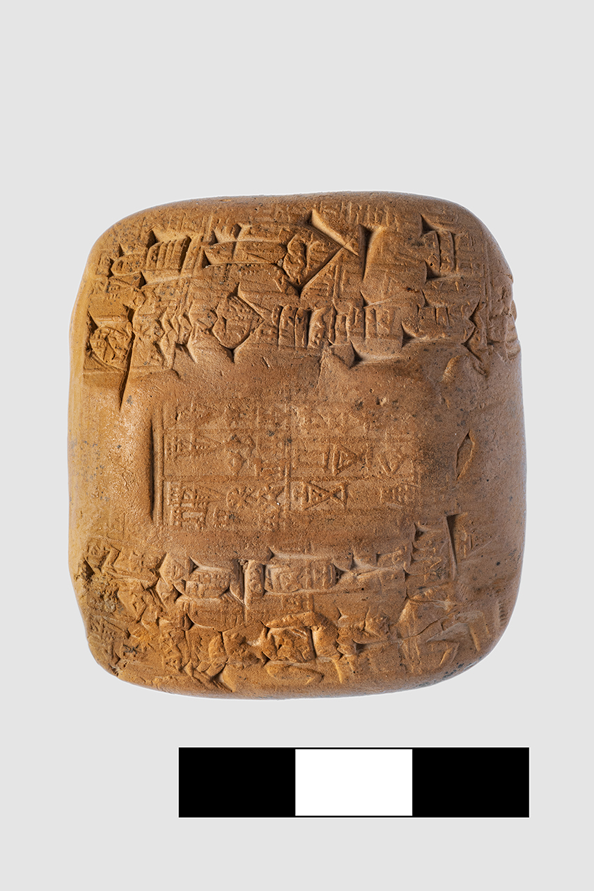 Tavoletta cuneiforme neosumerica in argilla di forma quadrangolare, di contenuto amministrativo. Gli angoli sono molto smussati. Il colore è marrone chiaro uniforme. La conservazione è buona e permette la lettura di tutti i segni. L'iscrizione in lingua sumerica si sviluppa su cinque righe nel recto e su tre nel verso. Un sigillo con iscrizione di quattro righe è impresso più volte sulla superficie, anche al di sopra dell'iscrizione amministrativa