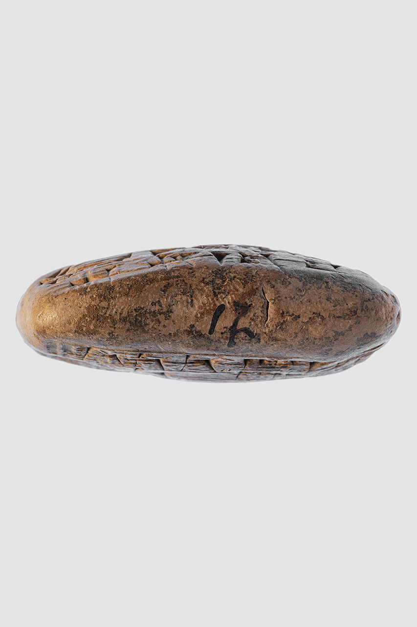 - NOTIZIE STORICO CRITICHE Il testo della tavoletta recita: “3540 fascine di canne della casa del governatore, prelevate dalla quantità di spettanza. Sigillato da Ur-Numušda. Latore Abbagina. Anno in cui l’alto sacerdote del grande santuario di Inanna fu insediato.” Il sigillo, impresso più volte sia sul recto che sul verso, ha un'iscrizione che recita: "Lugal-gue, ‘figlio’ di Ur-Nigar, lo scriba."