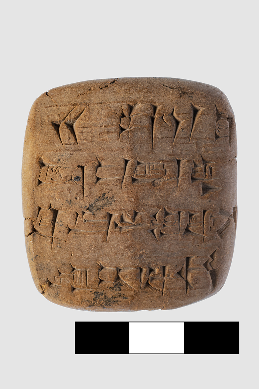 Tavoletta cuneiforme neosumerica in argilla di forma quadrangolare con angoli smussati, di contenuto ammistrativo. Il colore è marrone chiaro uniforme. La conservazione è buona e permette la lettura di tutti i segni. È presente una piccola lacuna nel margine sinistro. L'iscrizione in lingua sumerica si sviluppa su quattro righe nel recto e su una nel verso, al di sotto di n ampio spazio libero. Vi è inoltre l'impressione di un sigillo con iscrizione di tre righe