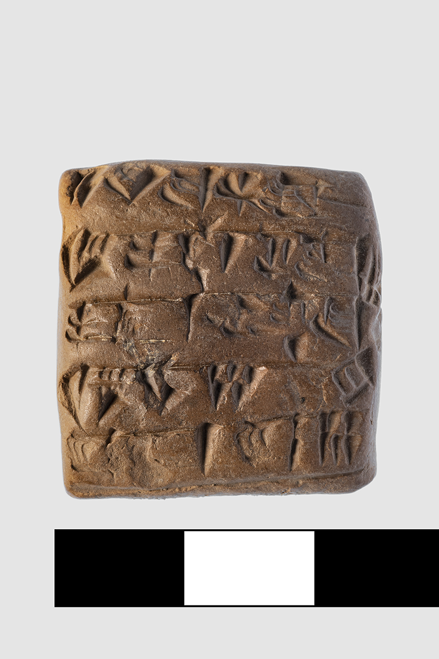 Tavoletta cuneiforme neosumerica di forma quadrangolare, di contenuto amministrativo. Il colore è marrone chiaro uniforme. La conservazione è buona e permette la lettura di tutti i segni. L'iscrizione in lingua sumerica si sviluppa su quattro righe nel recto e su cinque nel verso
