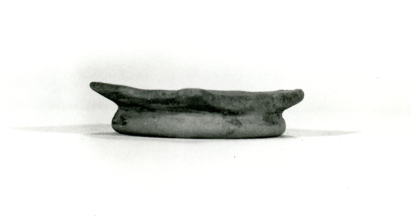 Piede ad anello obliquo con residui di vernice rossa e tracce interne della lavorazione al tornio