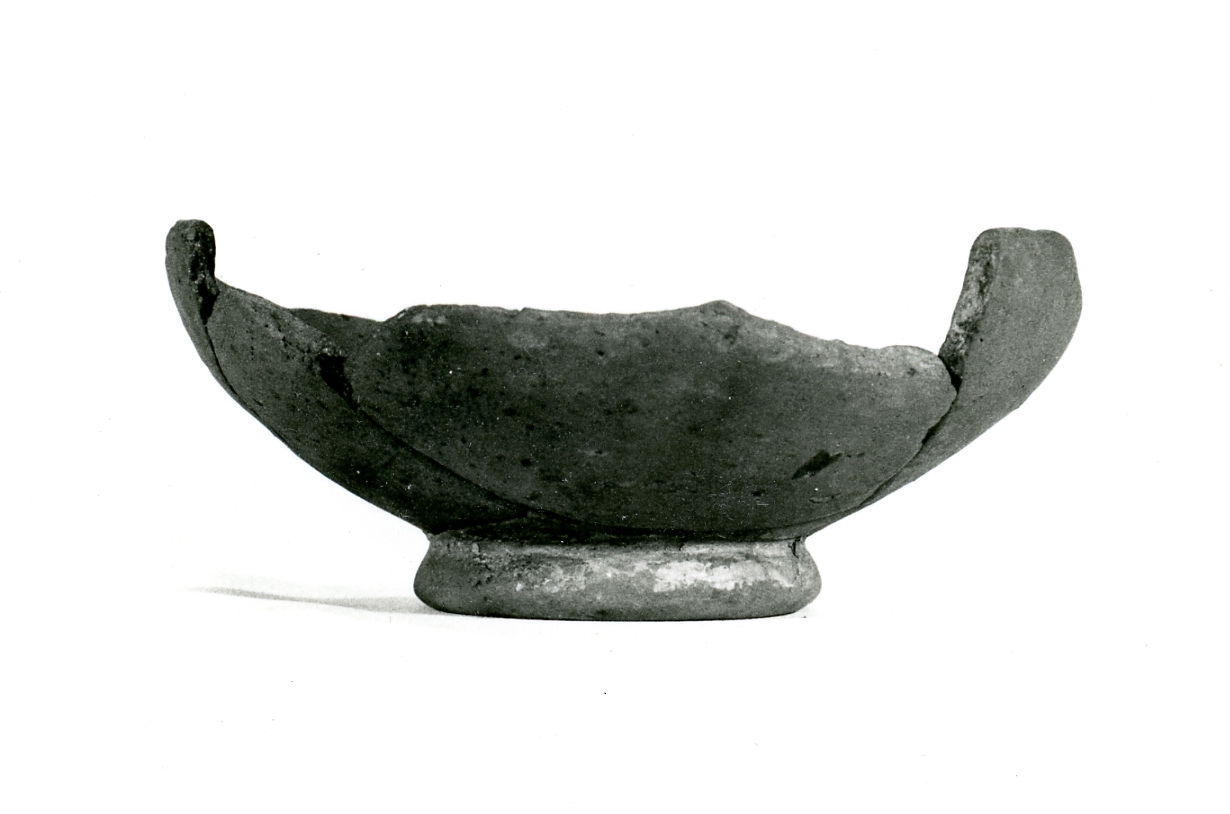 Coppa con piede umbilicato ad anello obliquo. Presenta la parete convessa e l'orlo verticale liscio