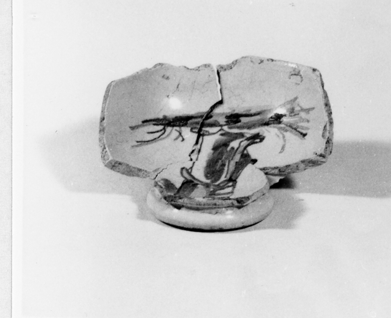 Piede a ventosa; cavetto a calotta. Colori: giallo in due tonalità, blu, viola di manganese