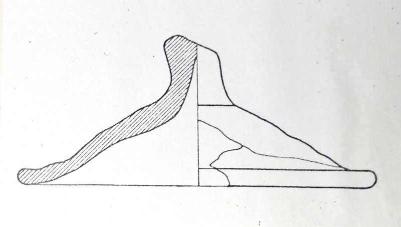Piccolo coperchio frammentario di vaso di uso domestico. Bordo orizzontale a sezione curvilinea, presa a bottone