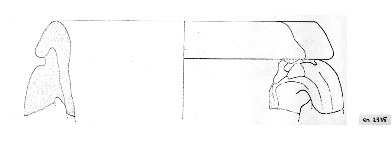Collo frammentario con larga imboccatura, orlo ingrossato e rovesciato, anse a sezione ovale saldate sotto l’orlo, riferibile ad un’anfora del tipo Pélichet 46