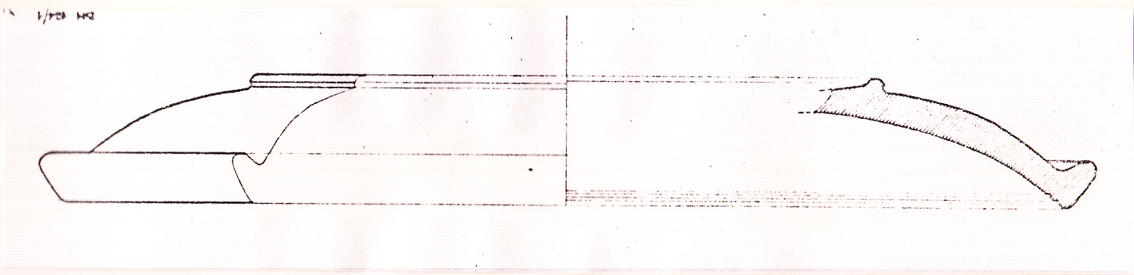 Coperchio frammentario a vernice rossa interna, orlo ingrossato pendulo, parete a profilo curvilineo molto aperta, piccolo piede ad anello. Impasto rossiccio grigiastro, vernice rosso scuro stesa uniformemente. Forma piuttosto rara di questa classe ceramica, che generalmente comporta solo forme di piatti. Cfr. CH. GOUDINEAU, in Mél, LXXXIII, 1970, pp. 159-186