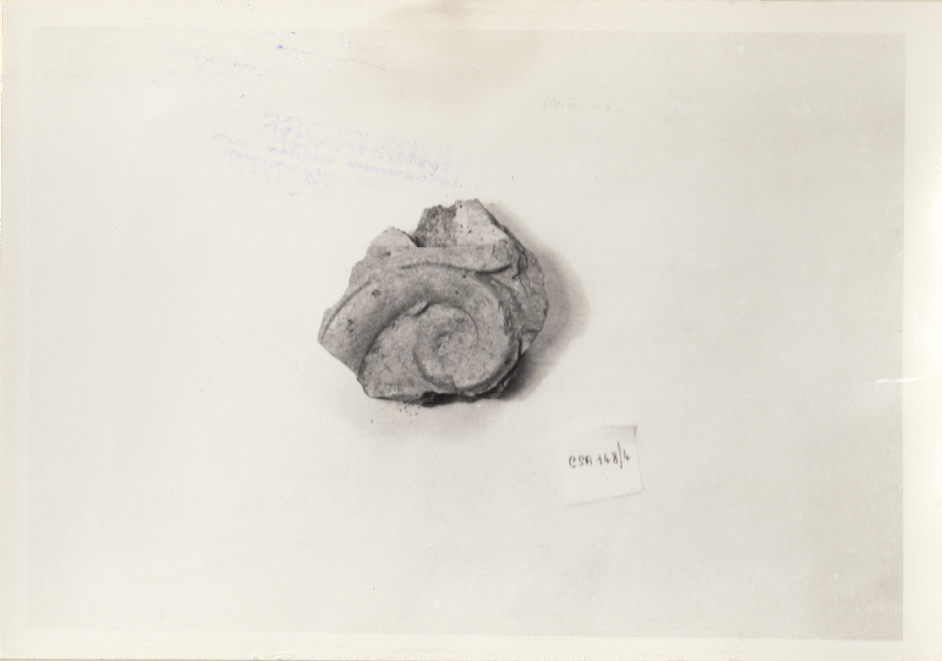 Girale di acanto appartenente ad un'antefissa. L'esemplare completo si presenta come segue: su listello si erge un kantharos dal quale fuoriesce una palmetta a 5 petali, uno centrale eretto, due rivolti verso l'alto, altri due con riccioli verso il basso. Dal kantharos si dipartono due grosse foglie di acanto ai cui lati si dispongono delle volute. Il kantharos è ornato da costolature e presenta orlo aggettante e ripiegato. Superficie patinata con argilla ben depurata. Argilla pallida di colore beige-rosato, poco porosa, con inclusi. Esecuzione a stampo