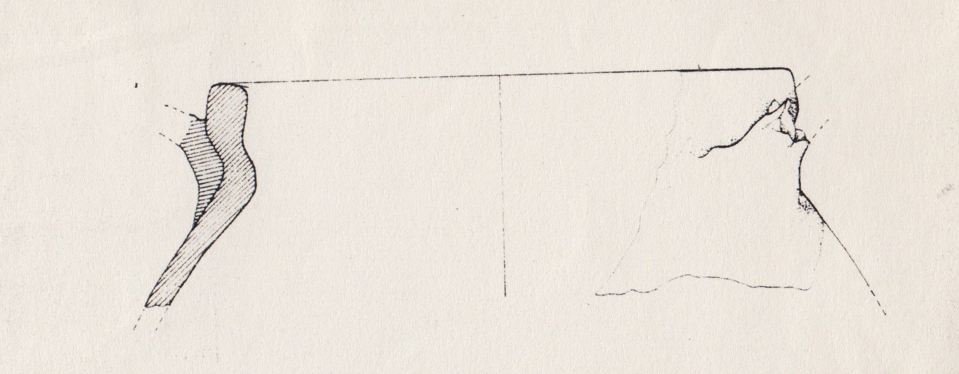 Frammento di orlo e parete di boccale globulare in ceramica comune, con labbro distinto verticale con strozzatura al punto di unione con la spalla svasata. Attacco superiore di ansa impostata verticalmente nella zona inferiore del labbro e superiore della spalla. Argilla arancio rosata, compatta e ben depurata, con frattura netta; superficie lisciata a tornio