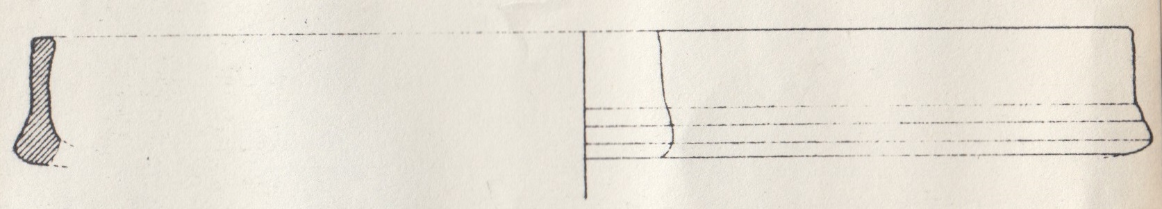 Frammento di orlo verticale e leggermente rigonfio all'interno e parete con listello scanalato esternamente di patera in ceramica comune, affine alla forma Goudineau 39, ricorrente nella terra sigillata di produzione italica; pertanto si considera tale ceramica come un'imitazione contemporanea ed immediatamente successiva alle forme analoghe in terra sigillata; in rapporto ai contesti di rinvenimento, di fine II-prima metà I secolo a.C., si possono riferire questi pezzi alle stesse officine che cominciano a produrre l'arretina in area tirrenica o ad altre gravitanti attorno a queste. Argilla beige giallina, ben depurata e compatta con frattura netta, lisciata in superficie; lavorazione al tornio