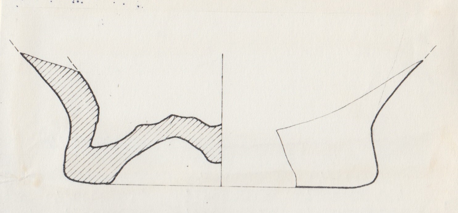 Frammento di parete e di piede sagomato con profilo esterno verticale e base ad anello dal fondo concavo umbilicato. La forma potrebbe ricordare quella di alcuni recipienti monoansati da trasporto, ma l'andamento della parete fa piuttosto pensare a una forma chiusa in ceramica comune. Argilla arancio rossiccia granulosa; piccoli inclusi; lavorata al tornio; patina bruna intenzionale