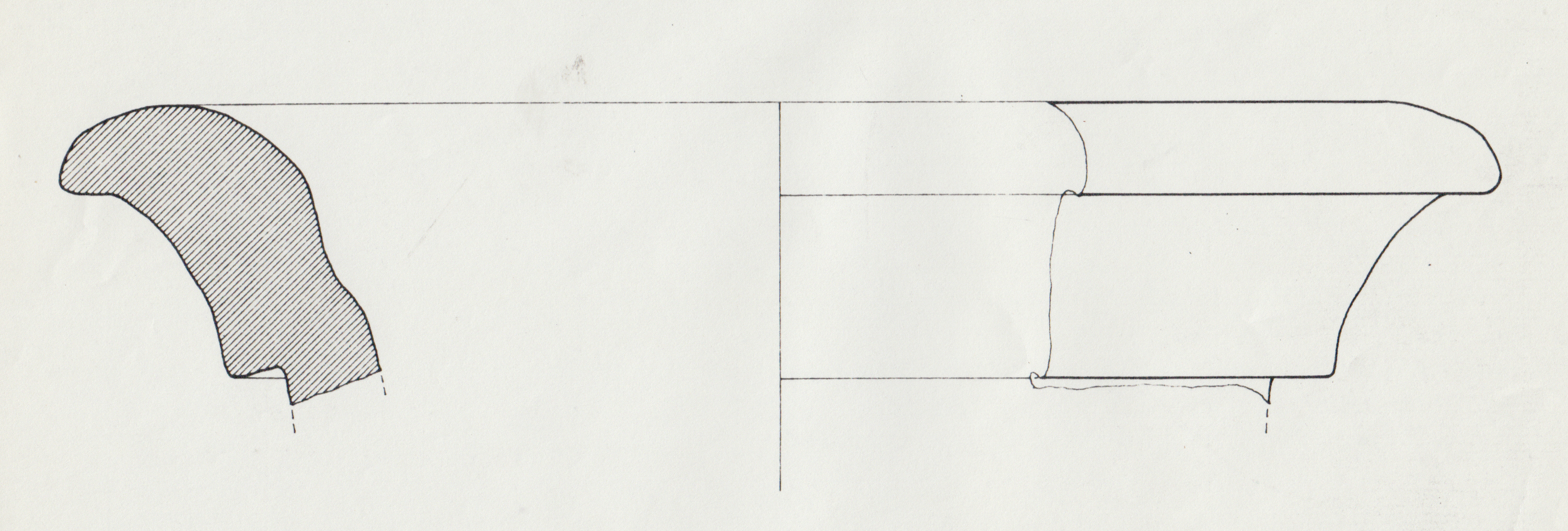 Orlo svasato e sagomato, ben rilevato. L'esemplare è riferibile a una delle forme 7-11 di Dressel, gruppo di anfore di origine iberica adibite al trasporto di salse di pesce. Il tipo può essere indicativamente accostato ad alcuni esemplari rinvenuti a Saragoza in un'opera di bonifica collocabile nella prima metà del I sec. d.C. Argilla a impasto compatto; superficie interna e esterna crema rosato, in frattura bruno; dimagrante scarso, grigio e bruno