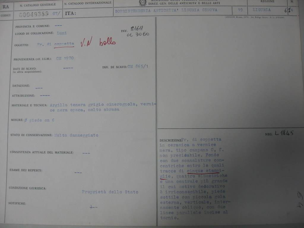 - ENTE SCHEDATORE Soprintendenza Archeologia della Liguria