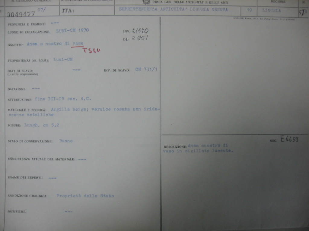 - ENTE SCHEDATORE Soprintendenza Archeologia della Liguria