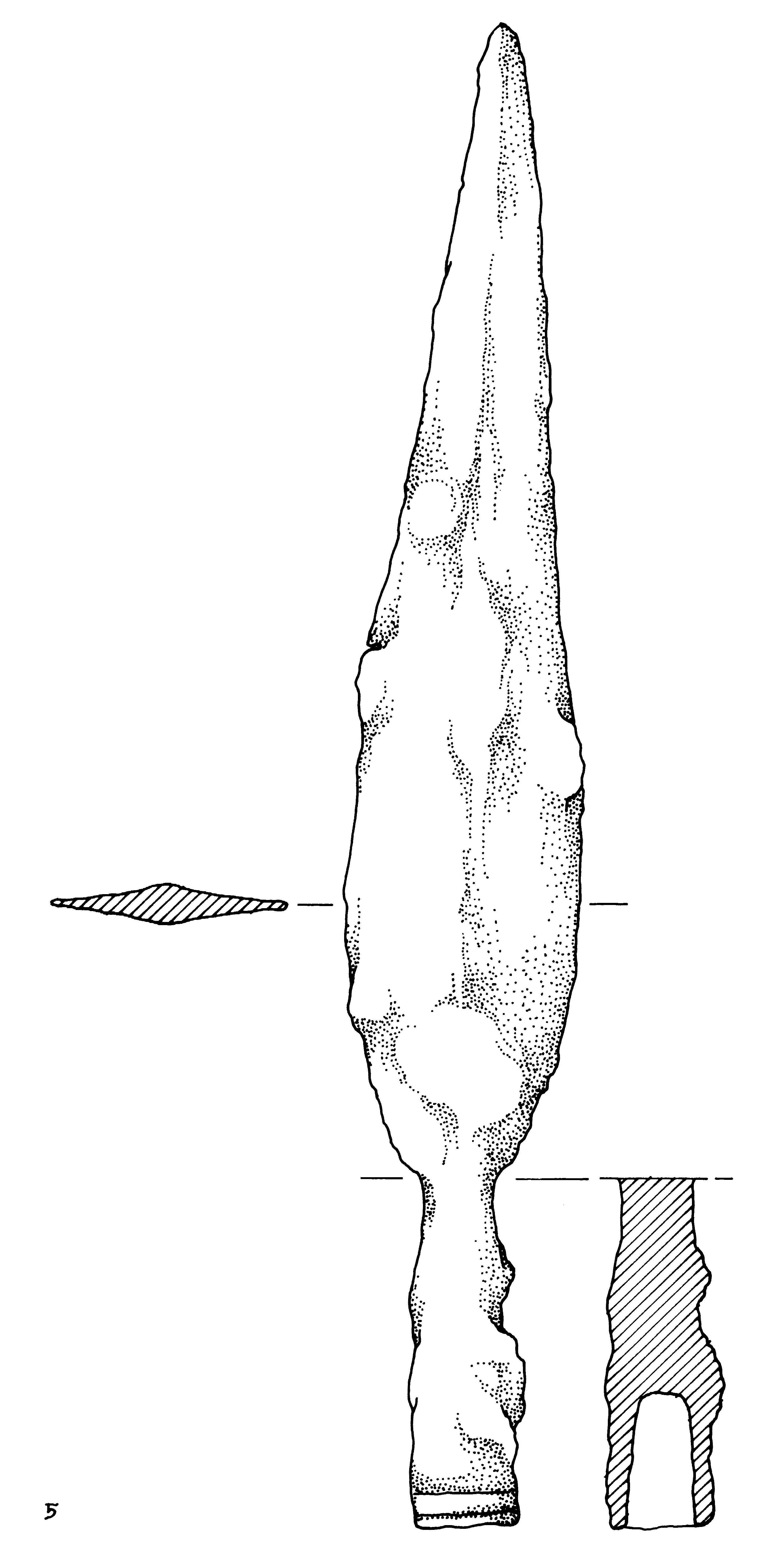 punta lanceolata di media lunghezza con nervatura mediana su entrambe le facce, margini assottigliati; innesto a cannone cavo internamente. Produzione locale o regionale