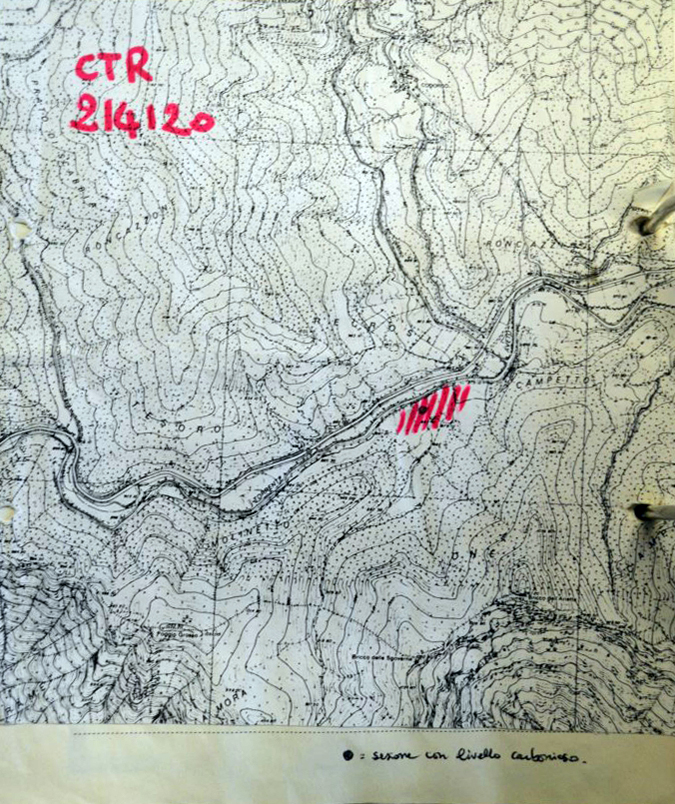- INTERPRETAZIONE dispersione di materiale litico di epoca mesolitica forse proveniente da un possibile suolo troncato individuato all'interno di un sondaggio