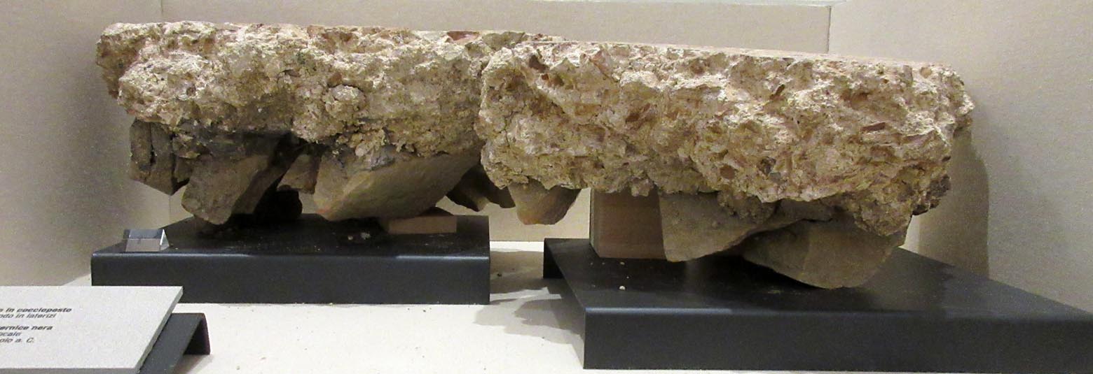 Frammento di pavimento in cementizio a matrice fittile con frammenti di dimensioni medio piccole. Si conserva parte del sottofondo costituito da uno strato inferiore in laterizi e da uno superiore con inclusi fittili di ridotte dimensioni