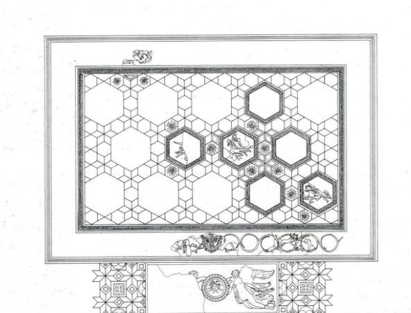 Lacerto di campo di pavimento musivo policromo con tessere in calcare di dimensioni medio piccole (1-1.5 cm ca.)