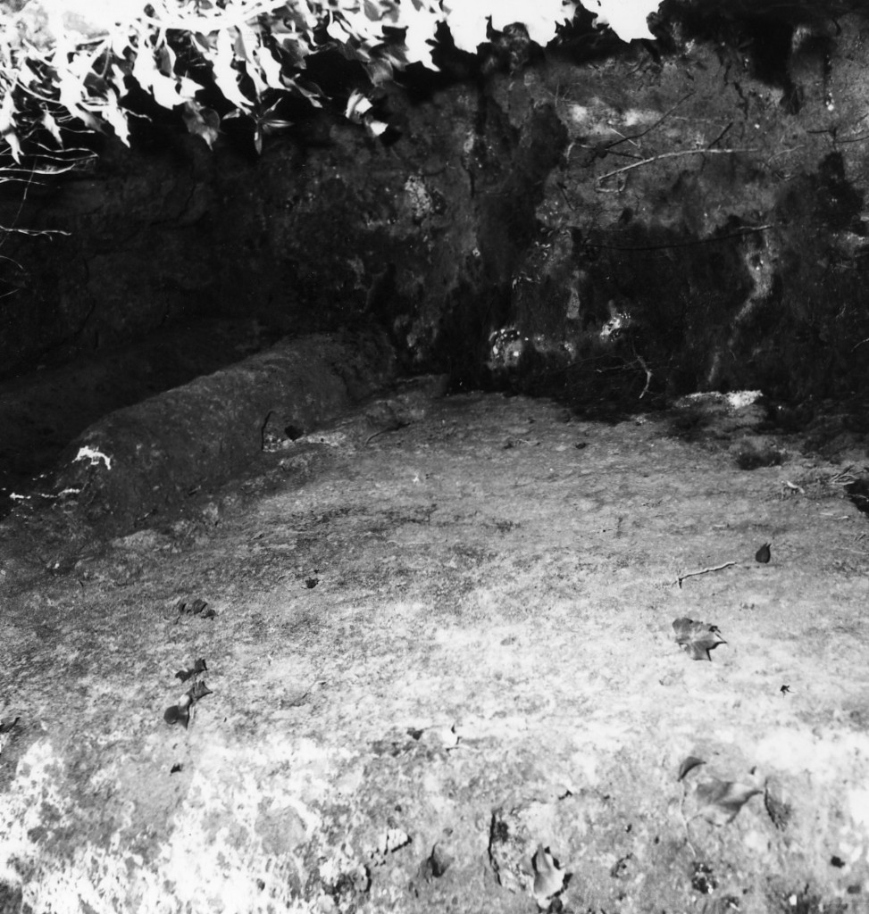 Scolpita. Ampia facciata, completamente consunta per la corrosione degli strati superficiali del tufo, sì che non è più possibile rilevarvi traccia delle cornici della falsa porta e del coronamento; in basso, al piede della facciata, tracce dubbie di uno zoccolo rilevato. L'altezza della facciata (misurata dal piede della trincea laterale al toro) è di cm.290, la sua lungh. cm.470 circa. Il fianco destro è ben conservato; la trincea è larga cm.65 e profonda, in corrispondenza del coronamento, cm.150. Il coronamento della fronte, realizzato anche sui fianchi fino alla parete di fondo, è conservato soltanto sul fianco destro e consiste in una fascia dentellata (si conservano 12 dentelli, alti cm.12, larghi 8,5, aggettanti 2,5), un toro, ben arrotondato, alto cm.27,5 e aggettante sulla fascia a dentelli cm.12, e una 'cimasa dorica', alta, nella parte concava, cm.35, nella parte piana, cm.21. La sovrastruttura terminale non è visibile perché completamnete interrata e inoltre impraticabile. In asse con la facciata, dromos breve e poco profondo che conduce alla camera