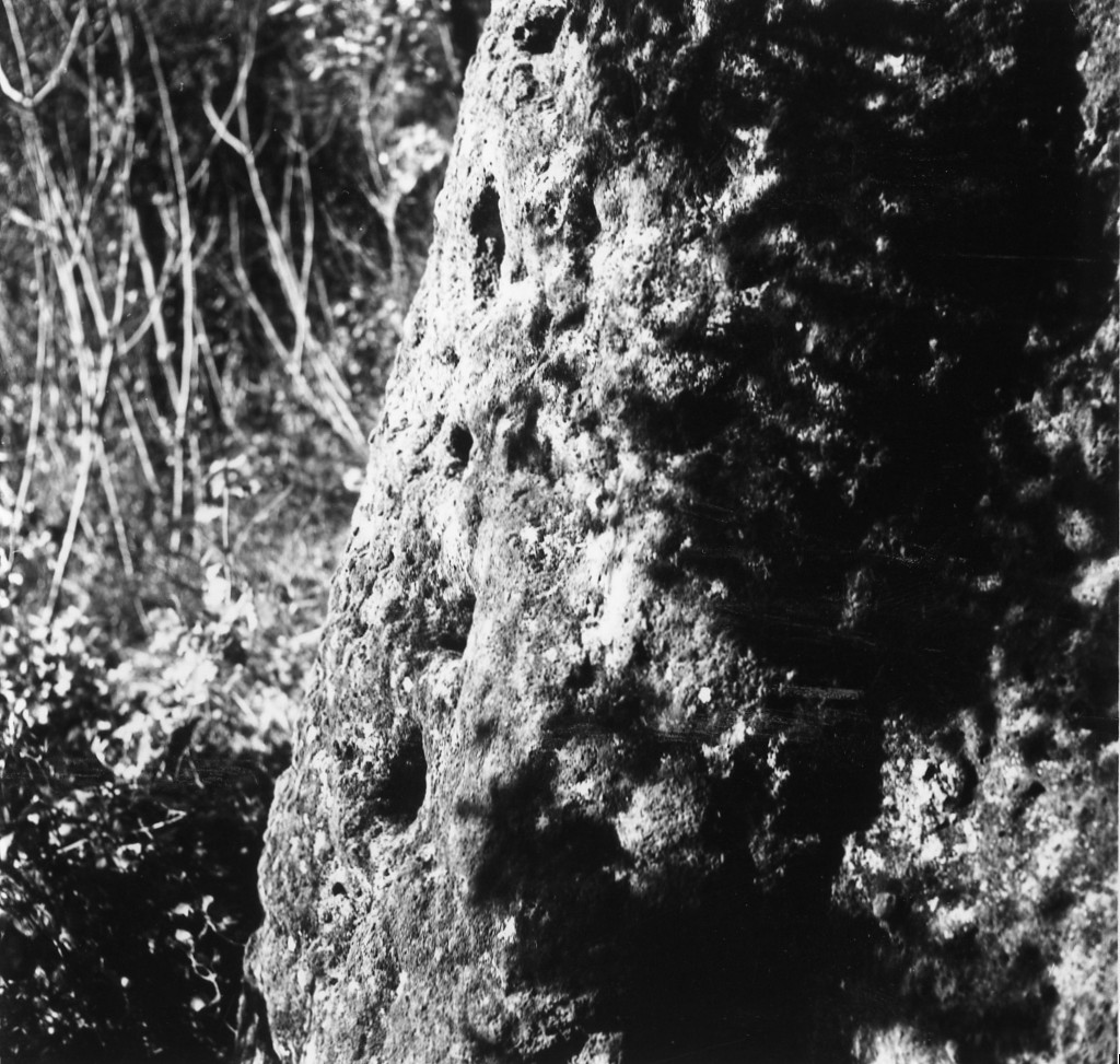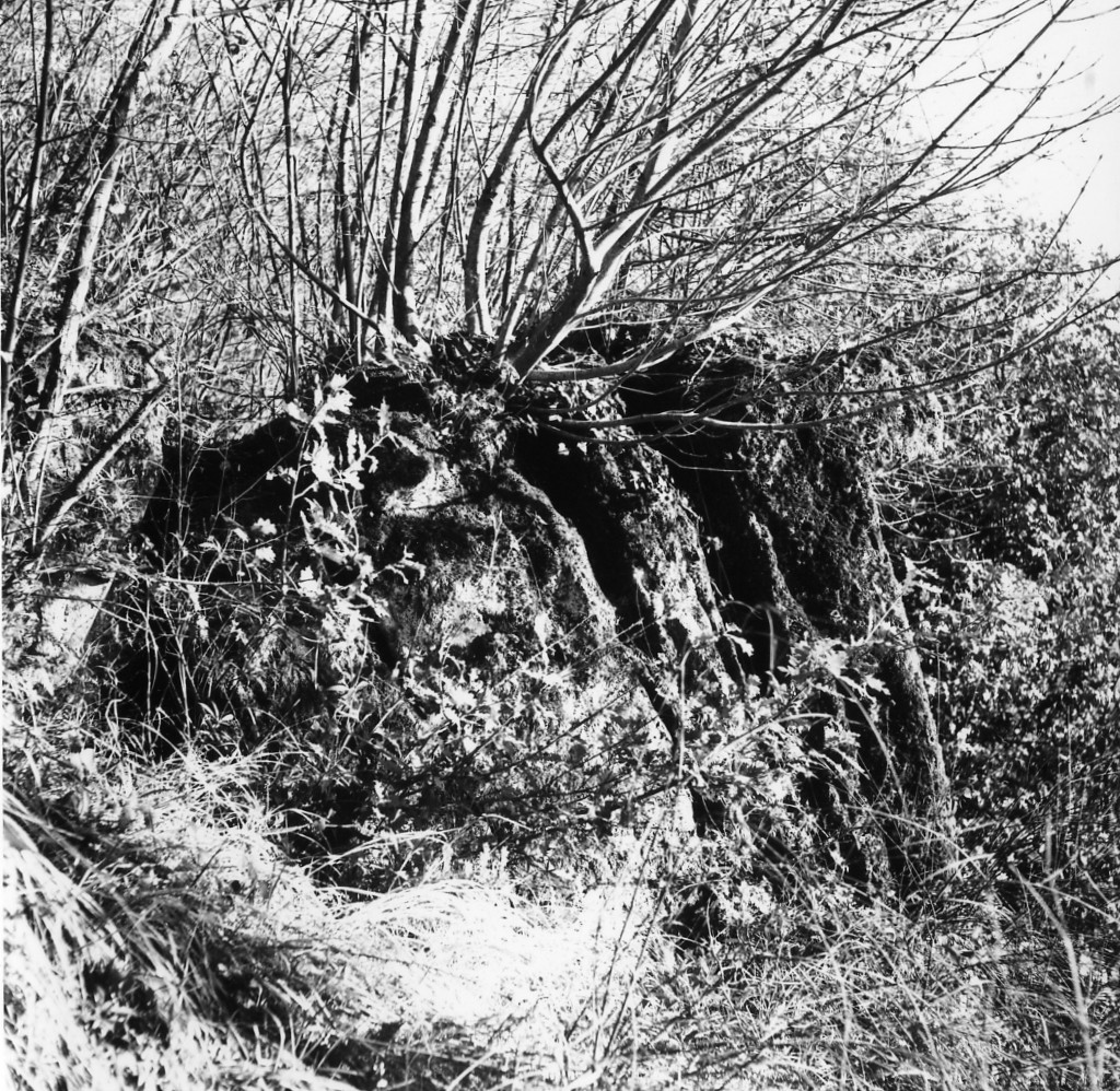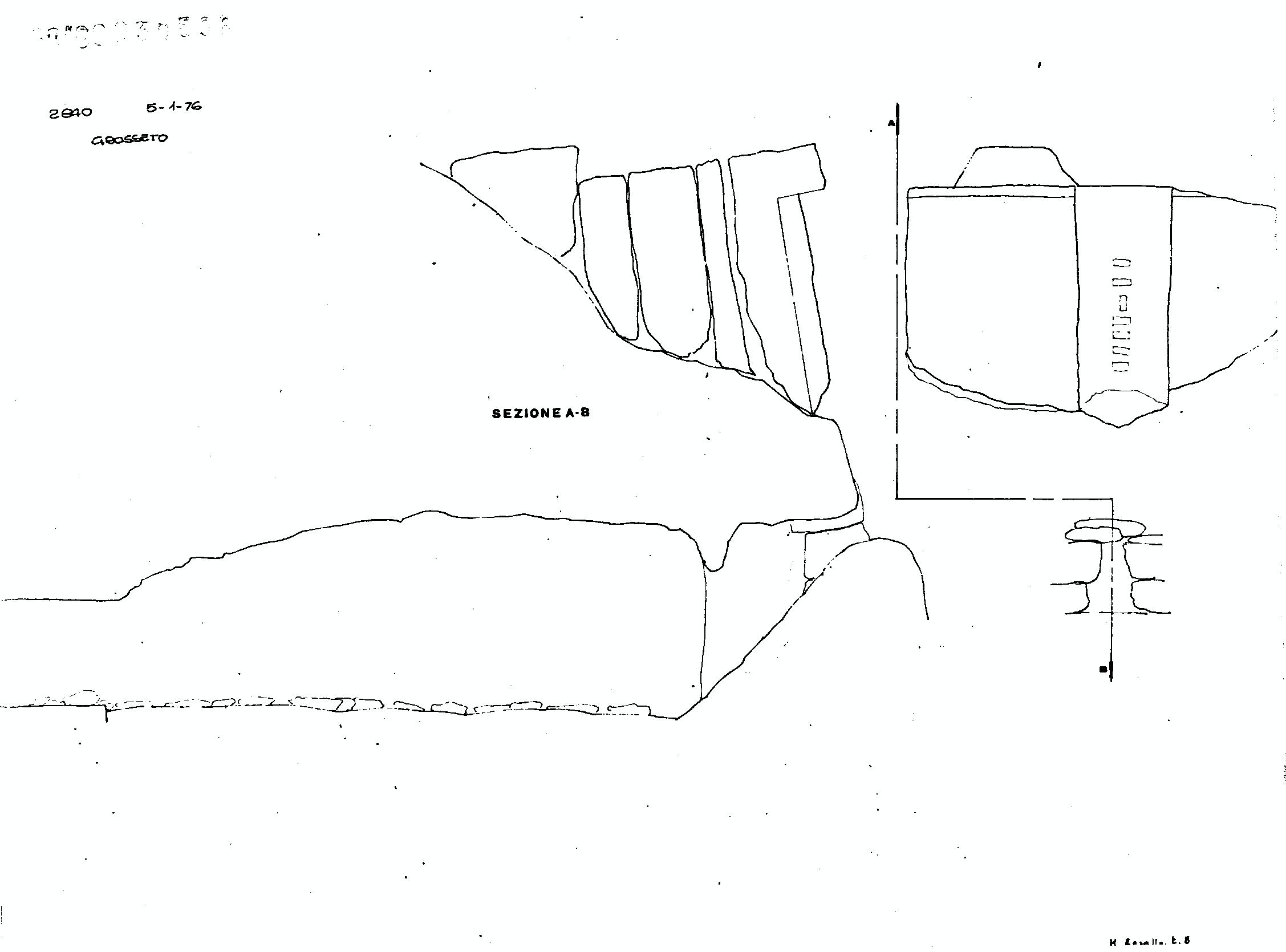 Scolpita. Immediatamente a destra della tomba Monte Rosello n.7, serie di grandi massi franati e sovrapposti, per una lunghezza di oltre m.3, una larghezza di m.3,70 circa e una profondità di m.2. Il blocco inferiore conserva, nella faccia rivolta alla valle, tracce di lavorazione, da interpretarsi presumibilmente come la parte superiore, con spioventi e columen, di un monumento a edicola. Lo spiovente destro è conservato per una largh. di cm.125 e una profondità di cm.145; il sinistro, per una largh. di cm.155 e una profondità di cm.190; in corrispondenza di quest'ultimo, si conserva un tratto di cm.125 della originaria parete di fondo. Sul columen, largo cm.85, alto cm.20 e conservato per una lungh. di cm.200, sette fori rettangolari per cippi (il quinto dal basso disposto longitudinalmente); circa m.1 al di sotto della base del lastrone si apre l'ingresso ad una vasta camera a pianta approssimativamente rettangolare (larga cm.470, lungh. cm.630), fornita di banchina (lungh. cm.98 nella parte destra, cm.105 sul fondo) fortemente ingombra di terra e pietre. L'ingresso, largo cm.120 verso l'interno è preceduto all'esterno da grossi blocchi sovrapposti in modo da formare una sorta di arco a sesto acuto. All'interno della camera presso l'ingresso, si sono rinvenuti numerosi frammenti ceramici evidentemente accumulati da cercatori clandestini. Tra i frammenti più significativi, numerosi frammenti a vernice nera, di cui due pertinenti a piattelli, con lettere incise, il beccuccio con l'ansa di un guttus di argilla figulina, frammenti di ceramica grezza pertinenti ad anfore e a olle