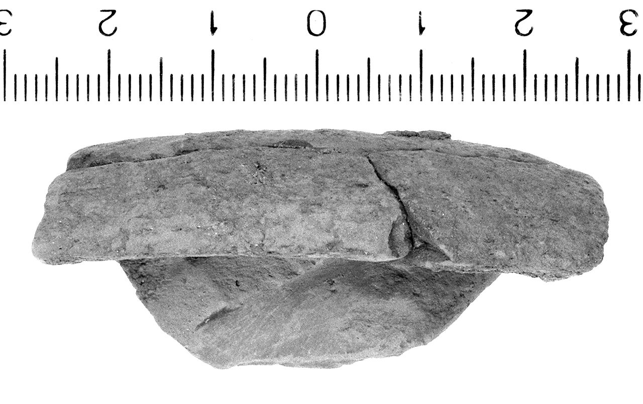 Orlo pendulo, con bordo assottigliato. Argilla (figulina) arancio chiaro rosato