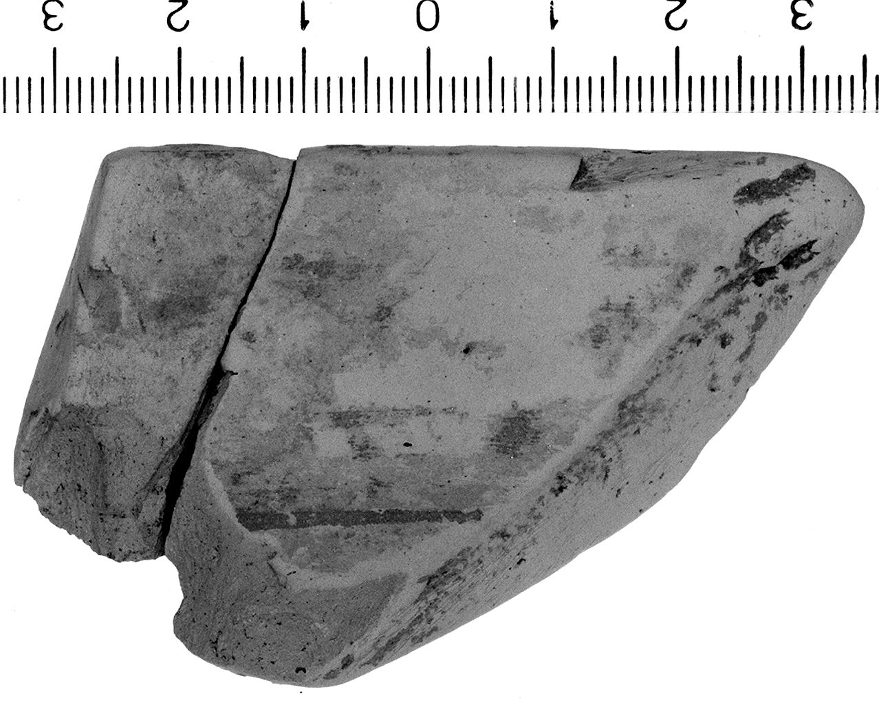 Orlo assottigliato e arrotondato; labbro verticale, alto e distinto, a profilo convesso; avvio della vasca. Tracce di decorazione dipinta a vernicebruna, probabilmente a motivi lineari. Argilla depurata. Colore rosato all'interno e nella metà inferiore esterna; labbro esterno rosa - arancio