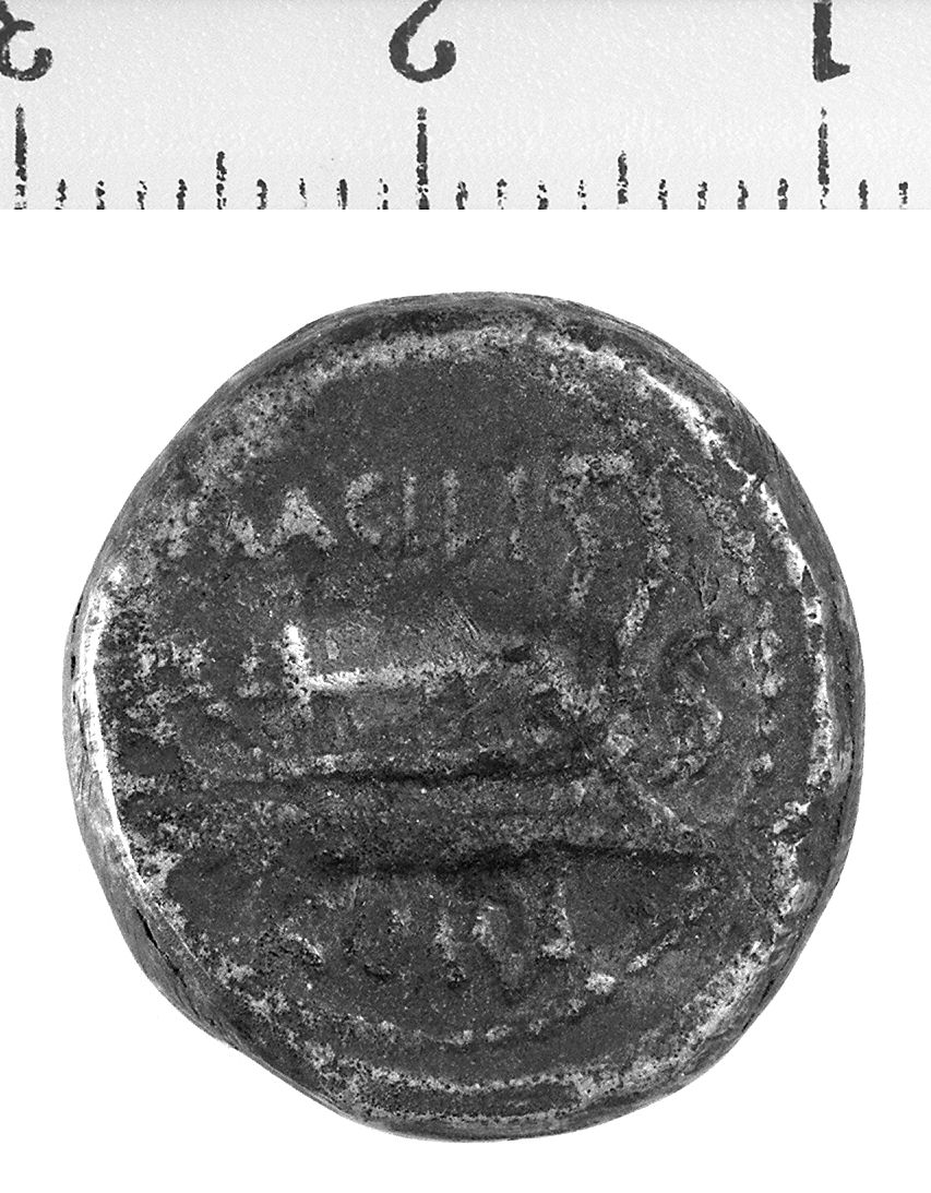 D/ Testa di Giove laureato a d.; segno di valore..R/ Prua di nave.; segnodi valore