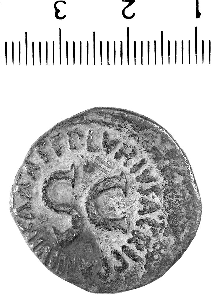 D/ Testa nuda di Augusto a d.. R/ Iscrizione al centro