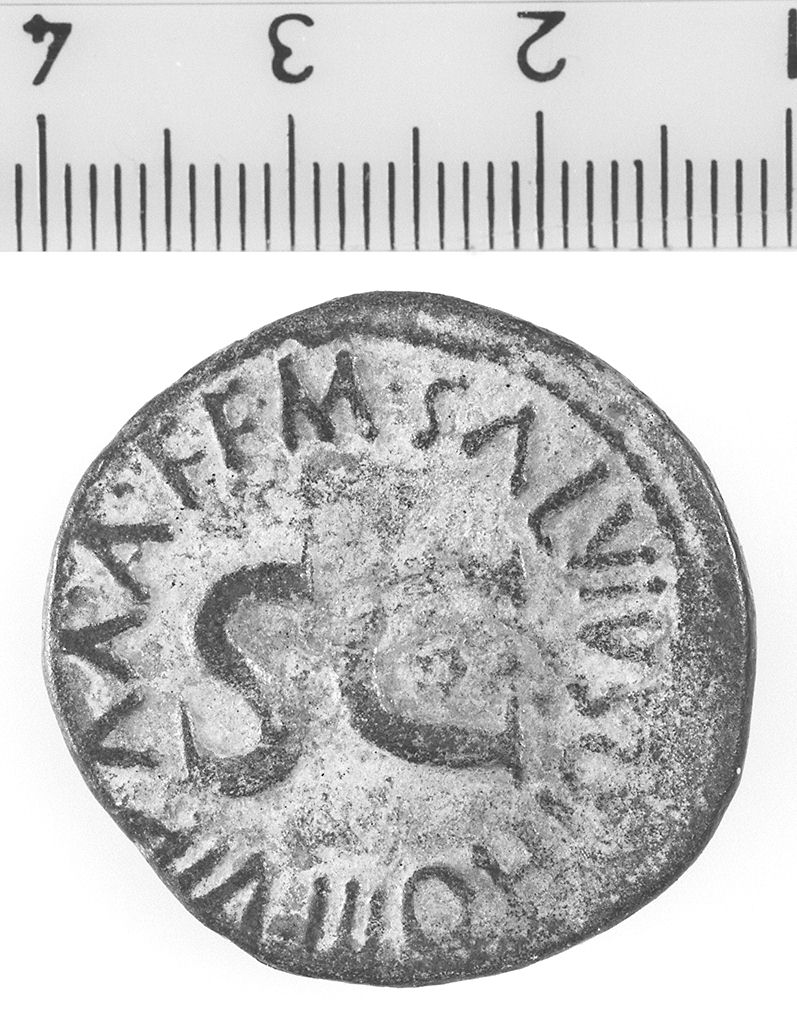D/ Testa nuda di Augusto a d.. R/ Iscrizione al centro