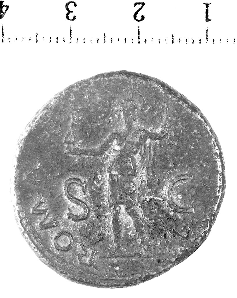 D/ Testa laureata di Vespasiano a d. R/ Roma galeata in abito militare stante a s.; tiene Vittoria con corona e palma e asta rovesciata