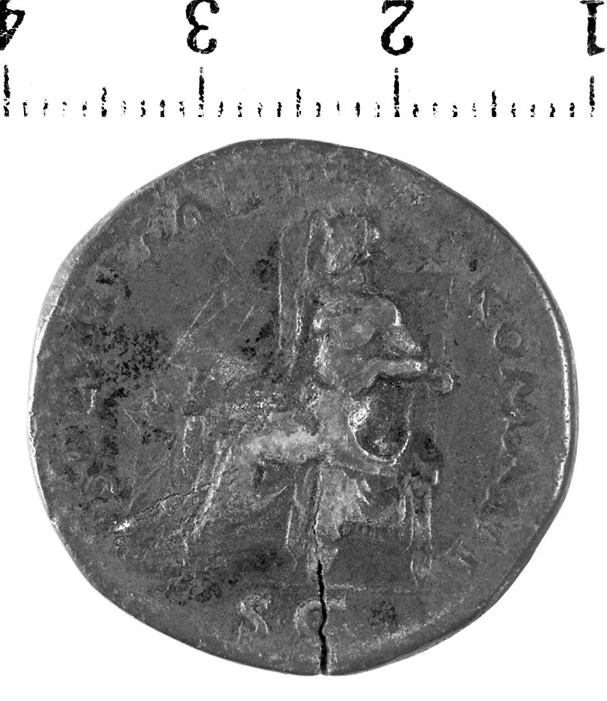 D/ Testa radiata di Vespasiano a d. R/ La Securitas seduta a s., davanti ara accesa
