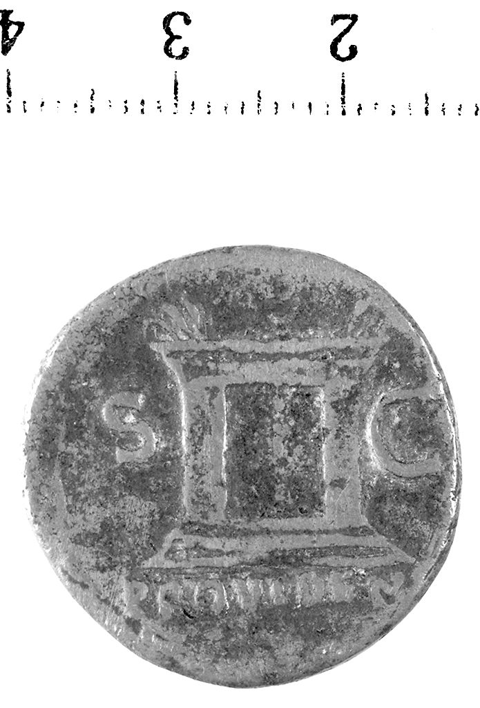 D/ Testa laureata di Vespasiano a d. R/ Ara con porta a due battenti