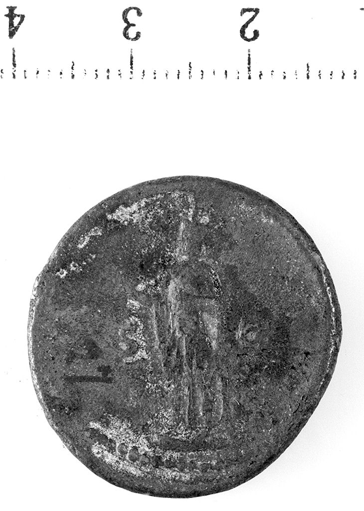 D/ Testa laureata di Vespasiano a s. R/ Figura stante a s