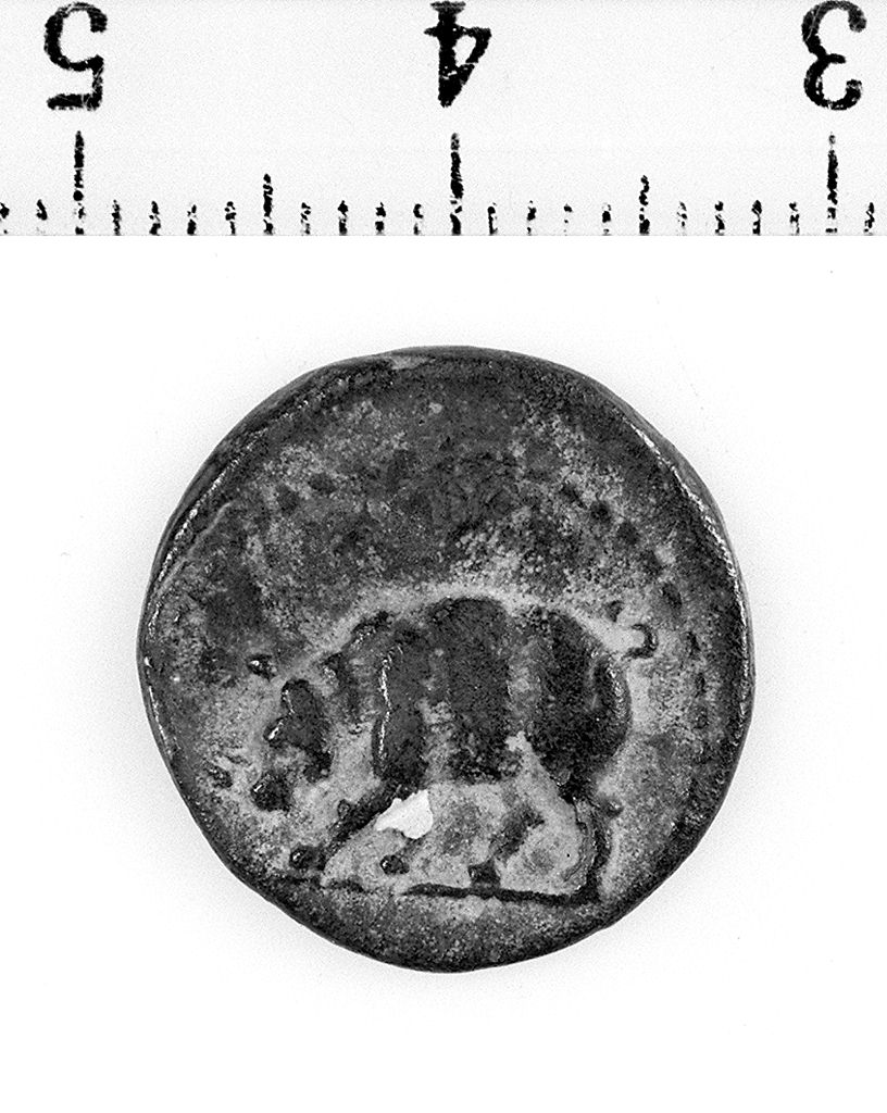 D/ Iscrizione al centro. R/ Rinoceronte a s