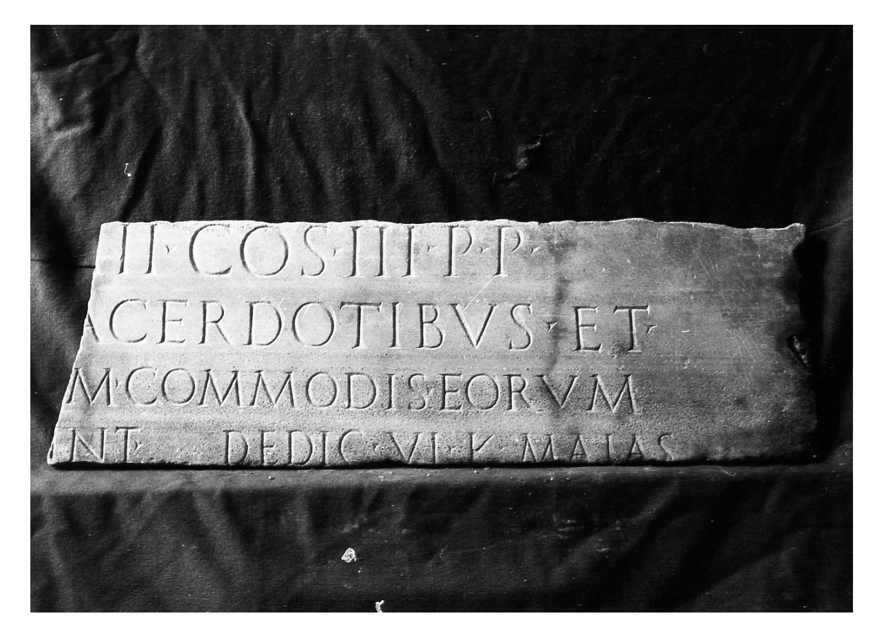 - NOTIZIE STORICO CRITICHE La lastra appartenne ad una iscrizione onoraria dedicata dal collegium victimariorum ad Adriano nel 129 d.C. eretta in un luogo sconosciuto di Roma