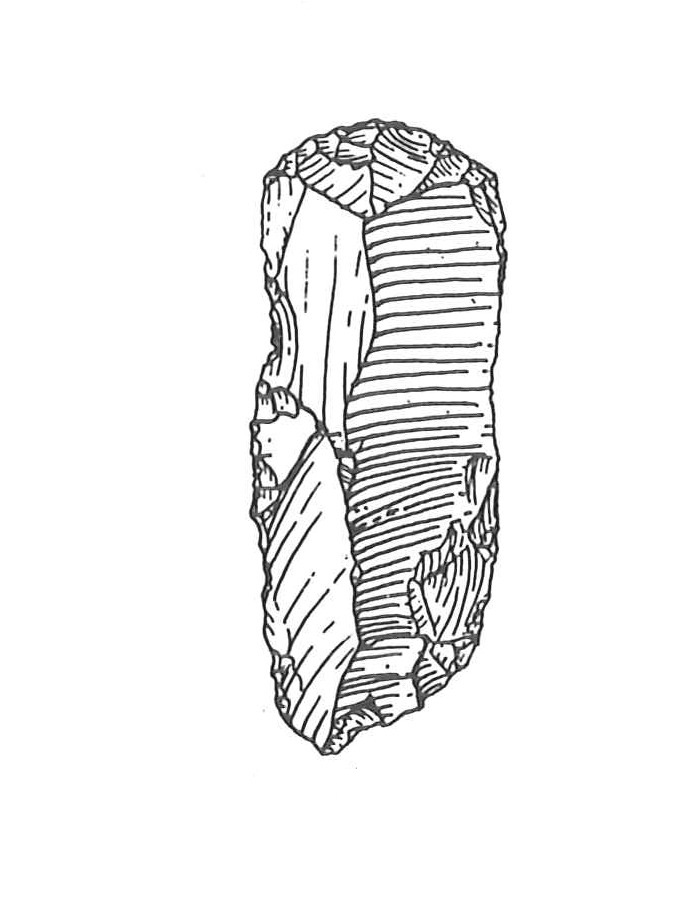 Grattatoio su lama subcarenata di colore rosso chiaro. Il grattatoio presenta fronte distale convesso ottenuto da un ritocco semplice profondo diretto. Il margine laterale sinistro è interessato da un ritocco semplice marginale diretto nella parte mediana