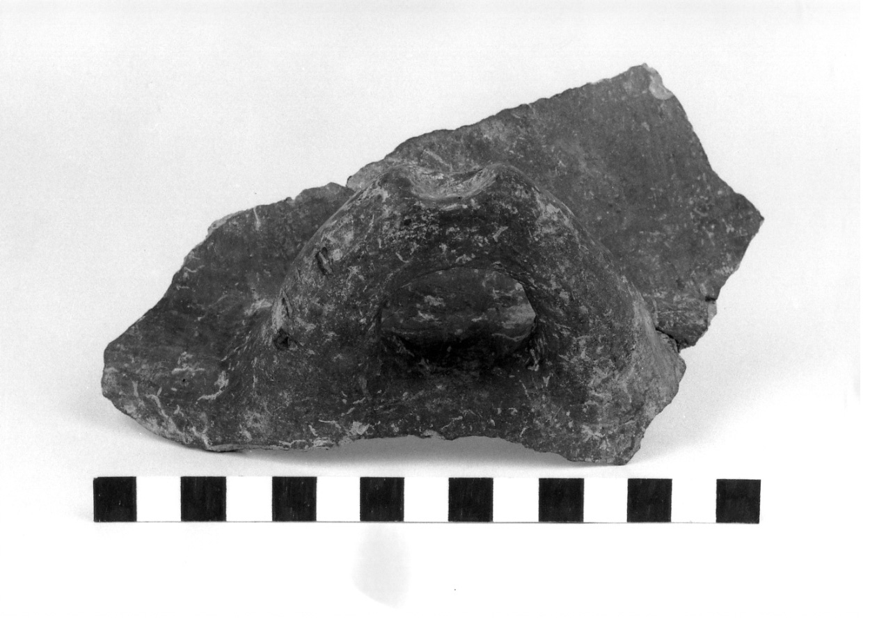Parte superiore a corpo troncoconico; spalla arrotondata; sulla spalla ansa a maniglia obliqua a sezione circolare insellata; impasto nerastro