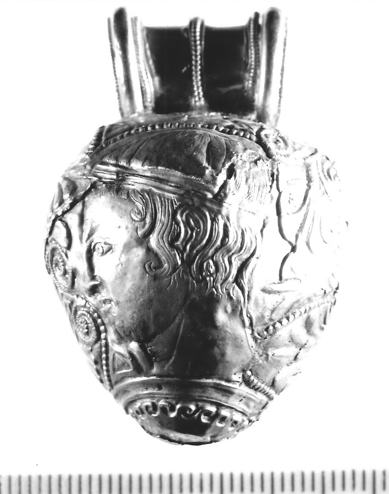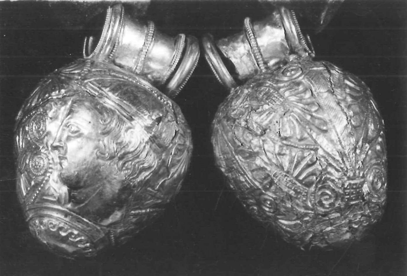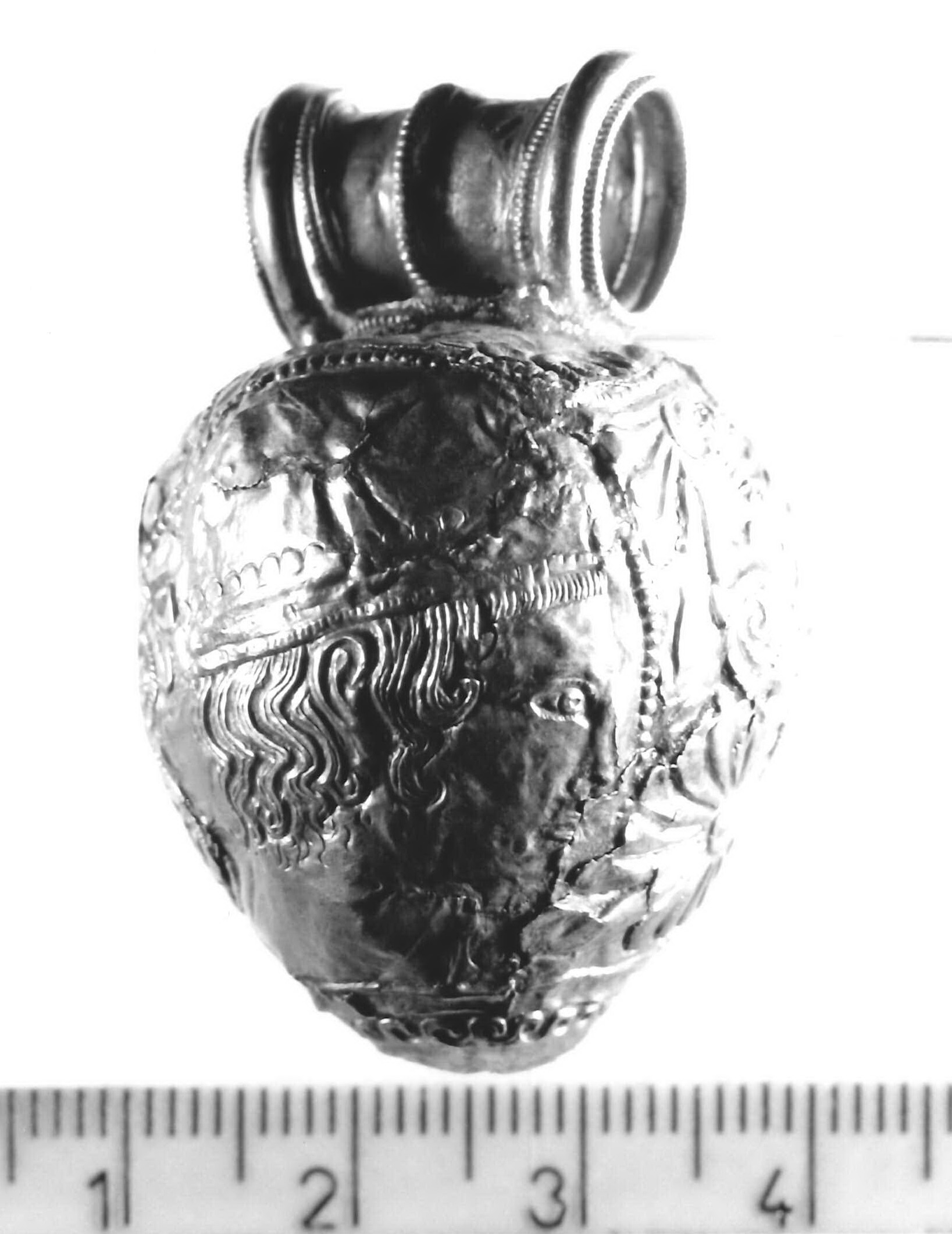 decorazione a sbalzo: 2 teste maschili