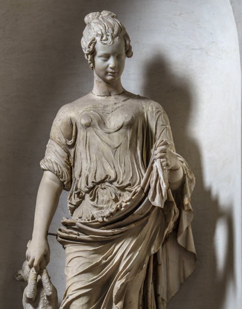 - NOTIZIE STORICO CRITICHE La tipologia è quella di una Hore primaverile o autunnale per la presenza dei fiori e del capretto quali attributi (cfr. ROHDEN, H.V., WINNEFELD, H., Die Antike Terrakotten-Architectonische romische Taureliefs der Kaiserzeit, Berlin und Stuttgart, 1911, tav. XLVII e pag. 89 e ss. ed inoltre, MANSUELLI G.A., Galleria degli Uffizi. Le sculture, I Roma, 1958, n. 124, fig. 120). Il panneggio leggero, incoerente ed inorganico, confrontato da Amelung con certi rilievi ellenistici del Louvre, fa attribuire la statua al frutto di una combinazione di artisti, più che di un singolo esponente, della scuola di Pasitele