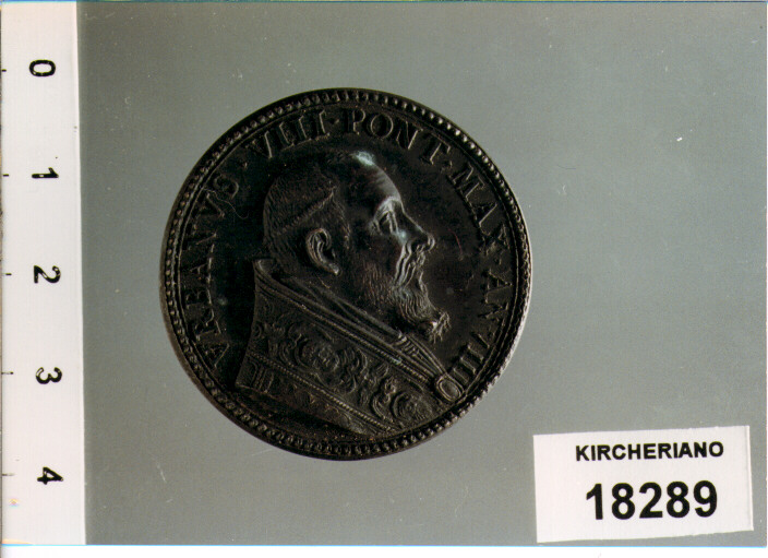 D/ VRBANVS . VIII . PONT . MAX . AN . VIII, BUSTO A D.; R/ S. PETRI BASILICA CONSECRATA, IL PONTEFICE CONSACRA LA BASILICA VATICANA; IN ESERGO, ROMA